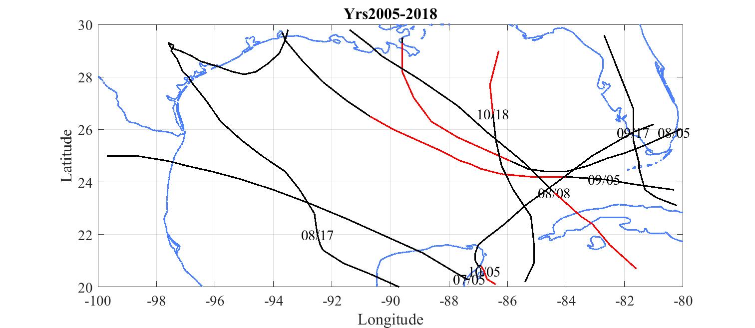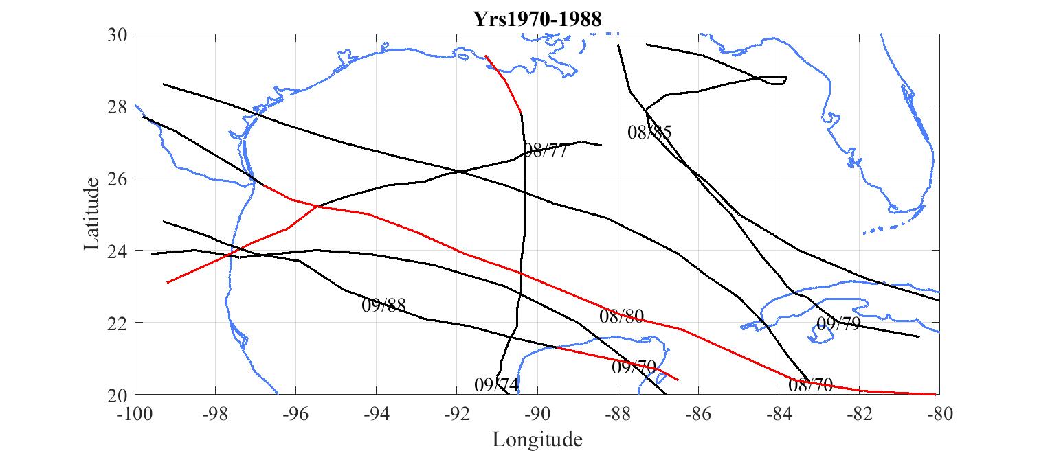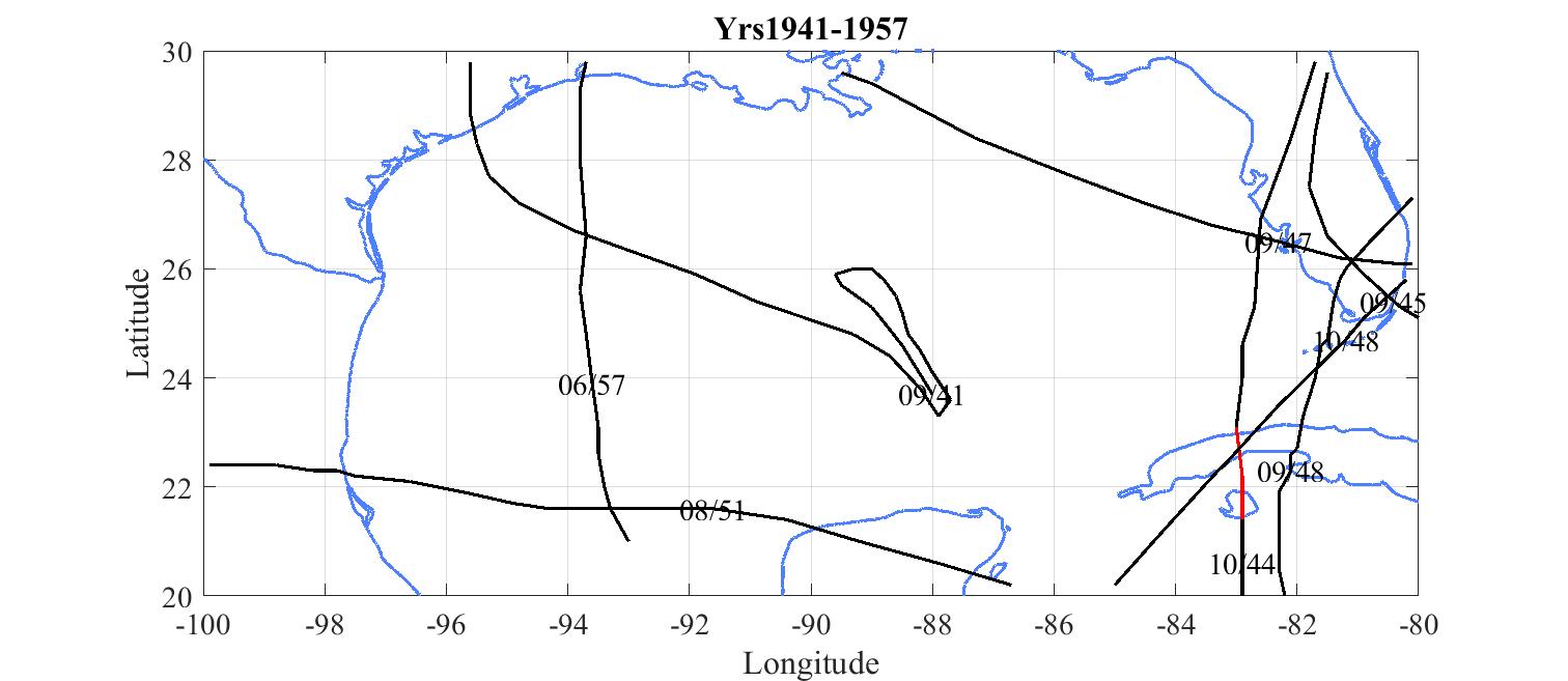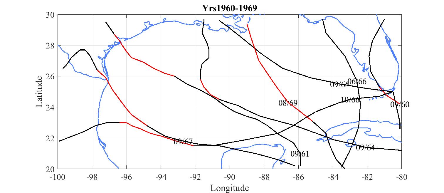 Red tracks are where the hurricane exceeded 120 knots.